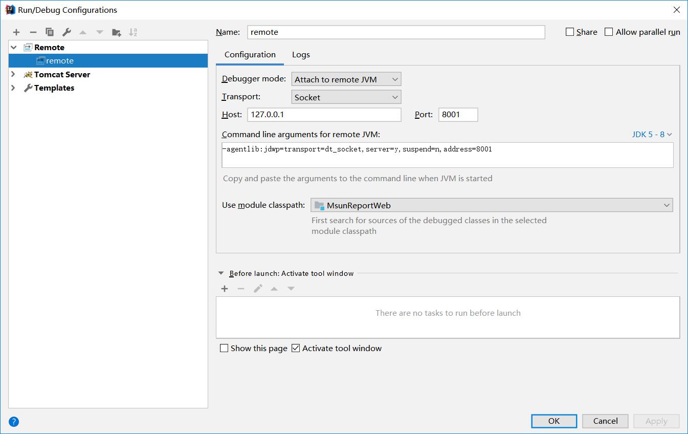 修改图中的host地址为实际需要远程调试的服务器地址,端口填写一个未被占用的端口(端口不要填写成正常服务的端口)。